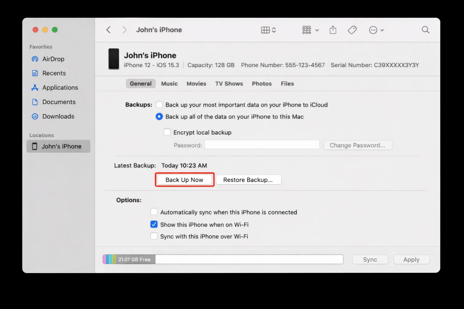 Backup iPhone on macOS Catalina or Newer